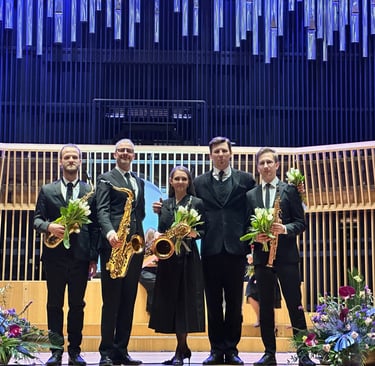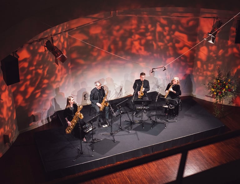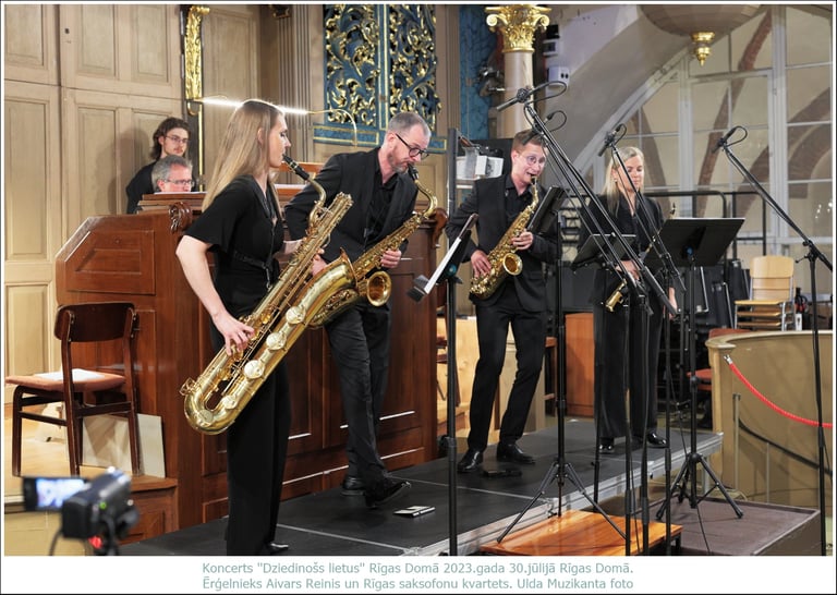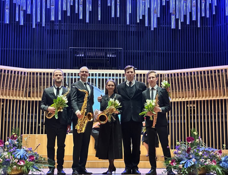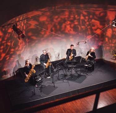 The Riga Saxophone Quartet (RSQ) made its promising debut in 1992, founded by Artis Sīmanis and marking the beginning of a new era for academic saxophone music in Latvia. The debut coincided with the beginnings of saxophone performance tuition at Jāzeps Vītols Latvian Academy of Music (1991). The current members - Aigars Raumanis (soprano), Rūdolfs Pēteris Rubenis (alto), Ainars Šablovskis (tenor), Baiba Tilhena (baritone) - have been together since the year 2023.
